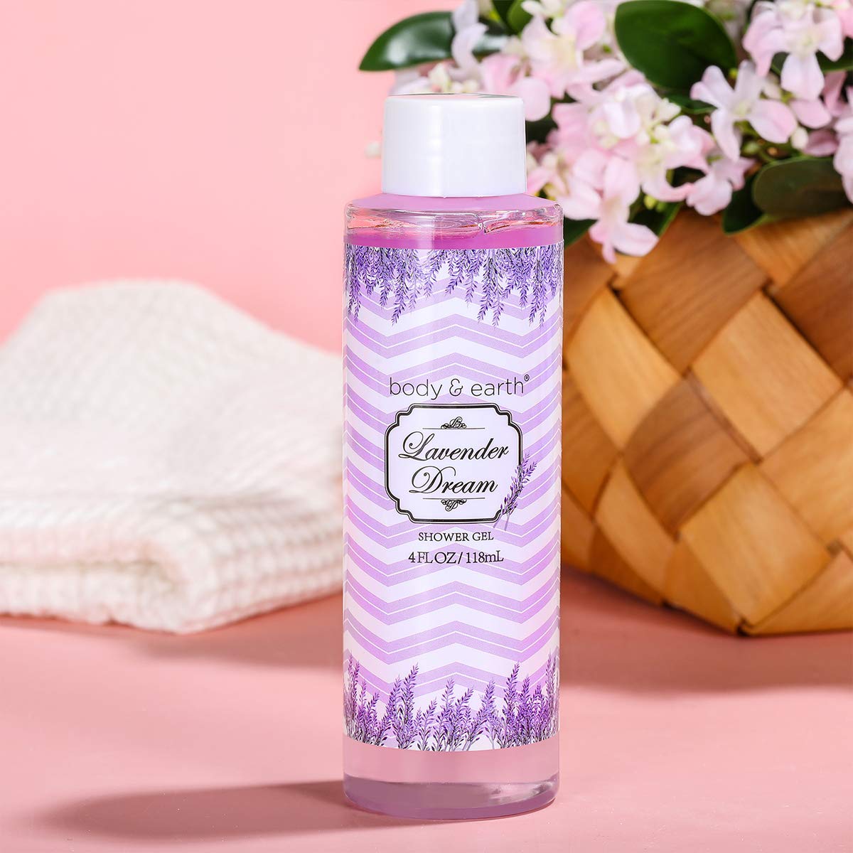 - Unique Aromatic Scents: Body & Earth gift basket for women infused with a sweet floral scents, these bath sets are bound to put you into a state of relaxation and bliss. Let your body soak up the delicious, sweet notes of pink peony and lavender marsh mellow while the products treat and moisturize your skin.